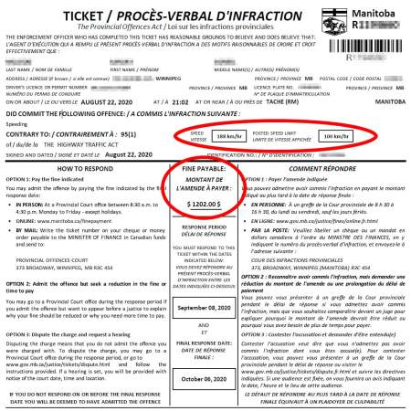 Manitoba RCMP said the man, 27, was clocked at 188 km/h in a 100 zone on Highway 59 and handed a $1,202 ticket and a serious offence notice.