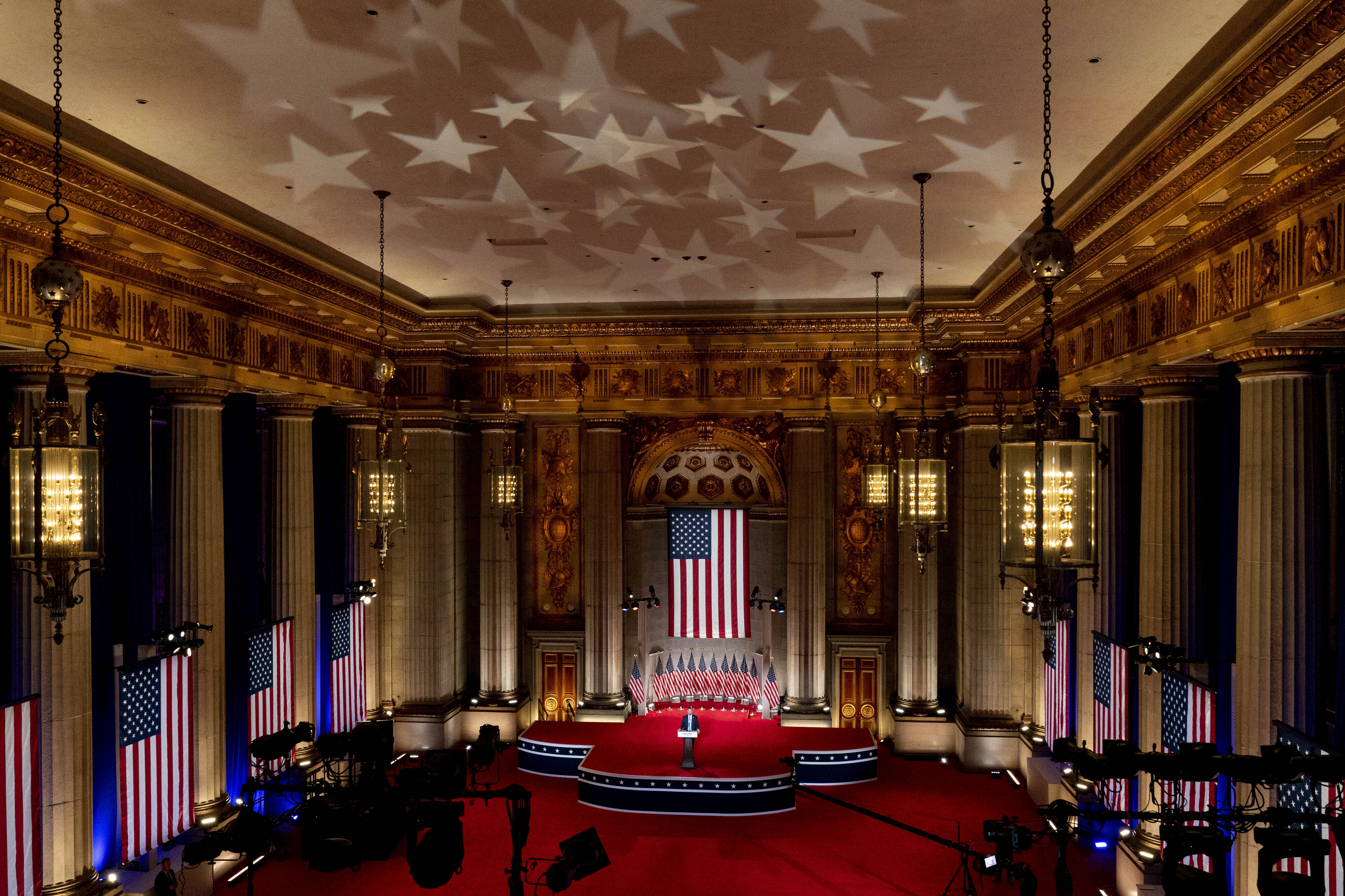 In the convention’s first half-hour, the convention aired a video featuring Trump signing a pardon for Jon Ponder, an ex-convict who now runs an acclaimed prisoner reentry program. Later, military aides opened the doors to the White House Cross Hall as “Hail to the Chief” played before Trump presided over a naturalization ceremony for new Americans. Both events were taped in recent days as Trump and his reelection campaign looked to find ways to airbrush the harsher edges of his actual policies.
