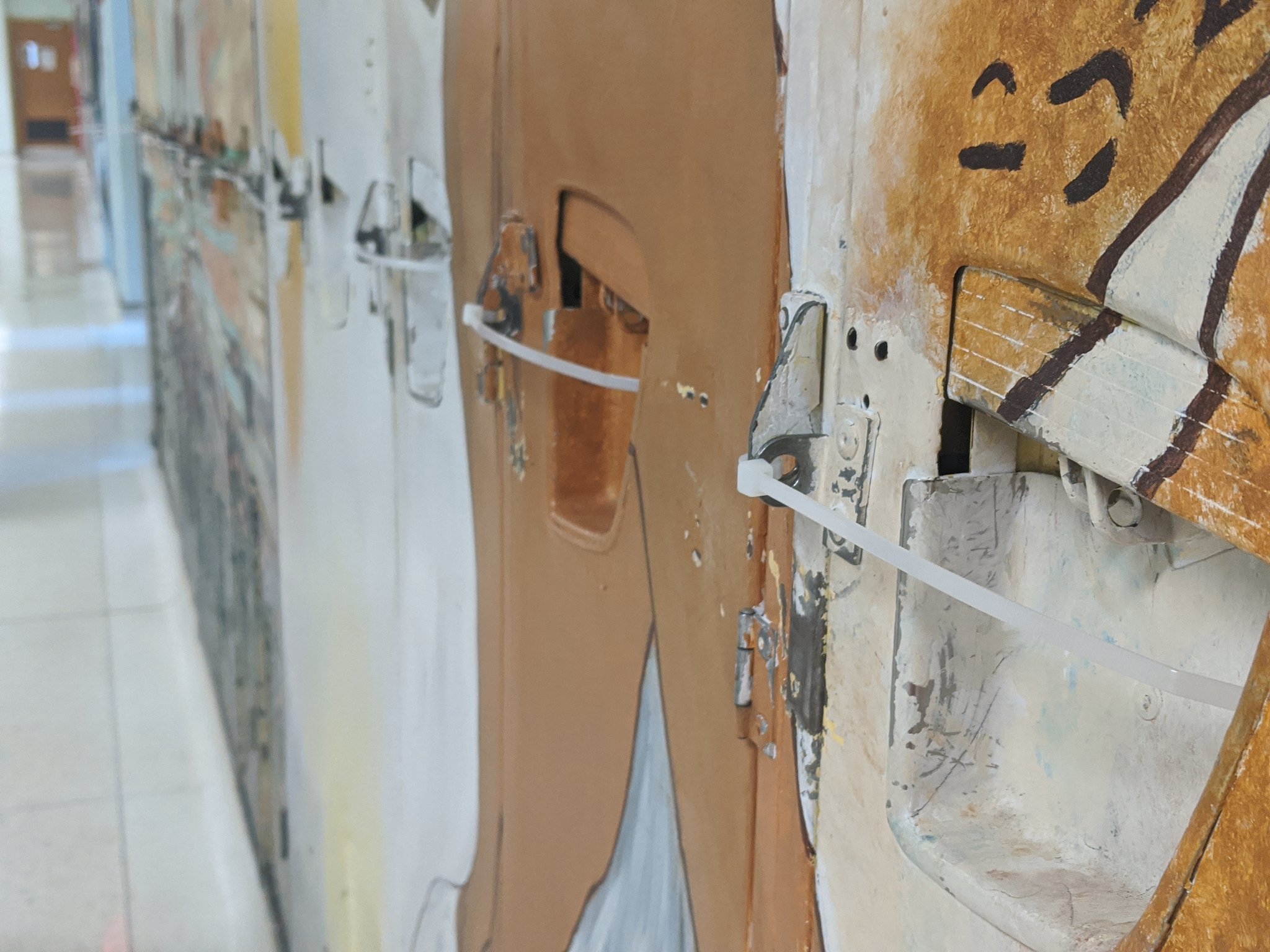 Lockers have been cable-tied shut and the cafeteria has been closed.