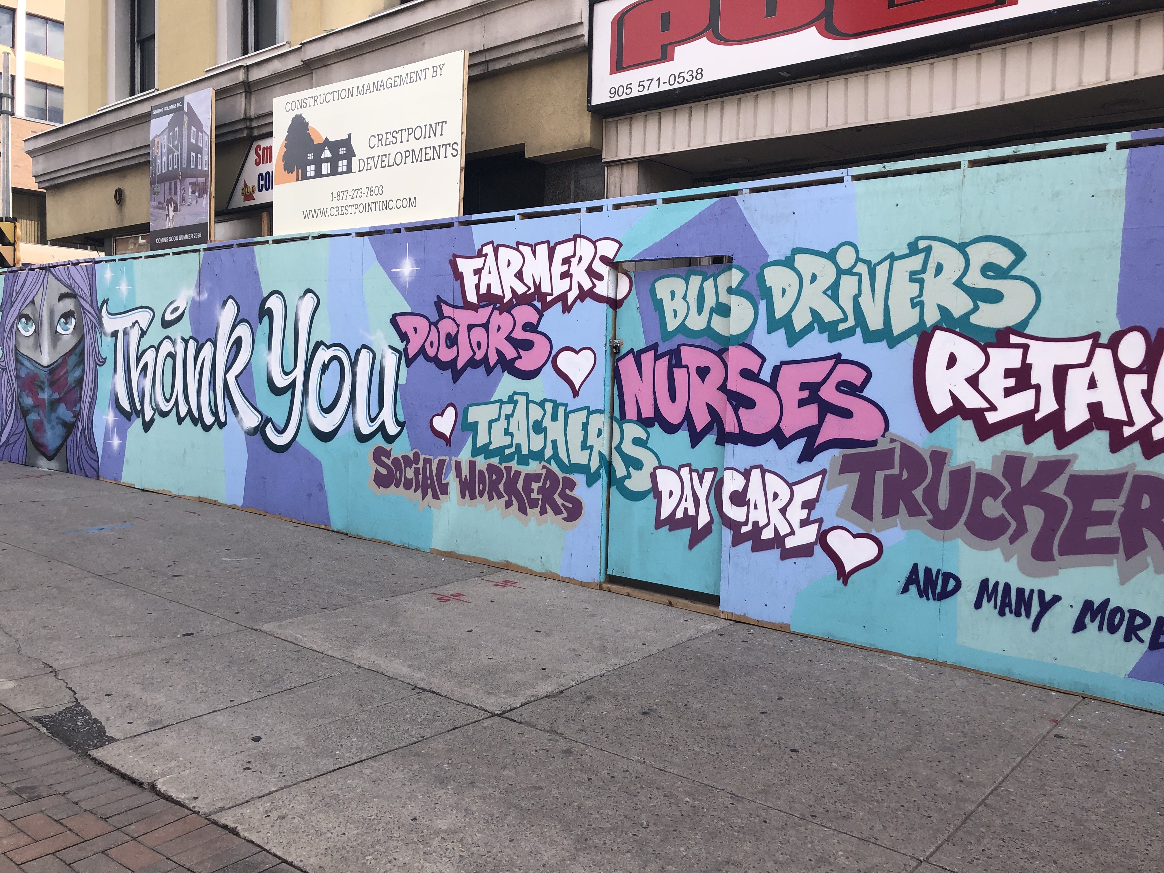 Across half the mural, Tyson goes on to thank nurses, farmers, daycare workers and a range of other people.