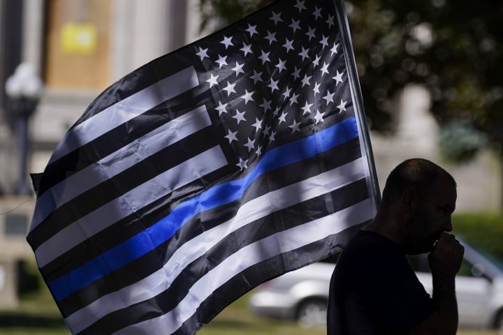 Some attending the rally in the Wisconsin city wore “back the blue” shirts. Others carried American flags. They applauded when law enforcement vehicles rolled by.