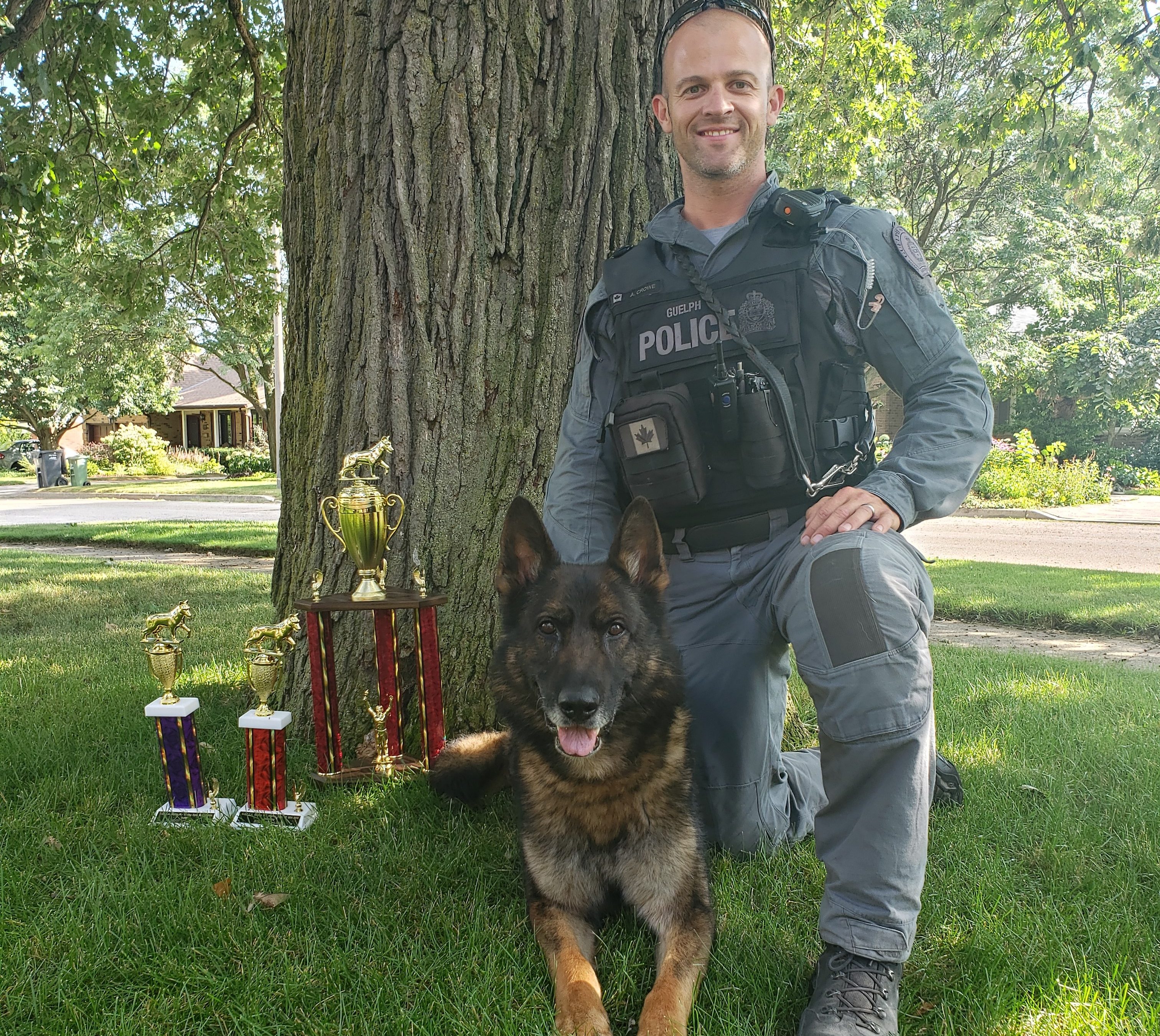 The German shepherd has been paired with Sgt. Andrew Crowe since his arrival in Guelph in July 2011 and was trained in a variety of tasks including tracking, searching, drug detection and detection of currency.