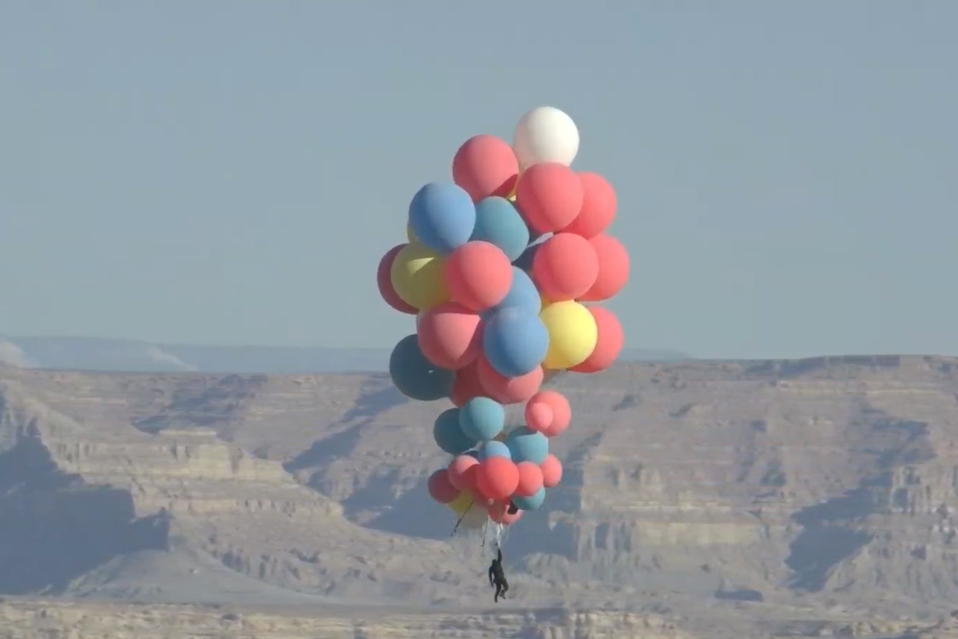 The well-known illusionist soared into the sky with a clutch of giant balloons on Wednesday, in a stunt streamed live via YouTube from the desert in Arizona.