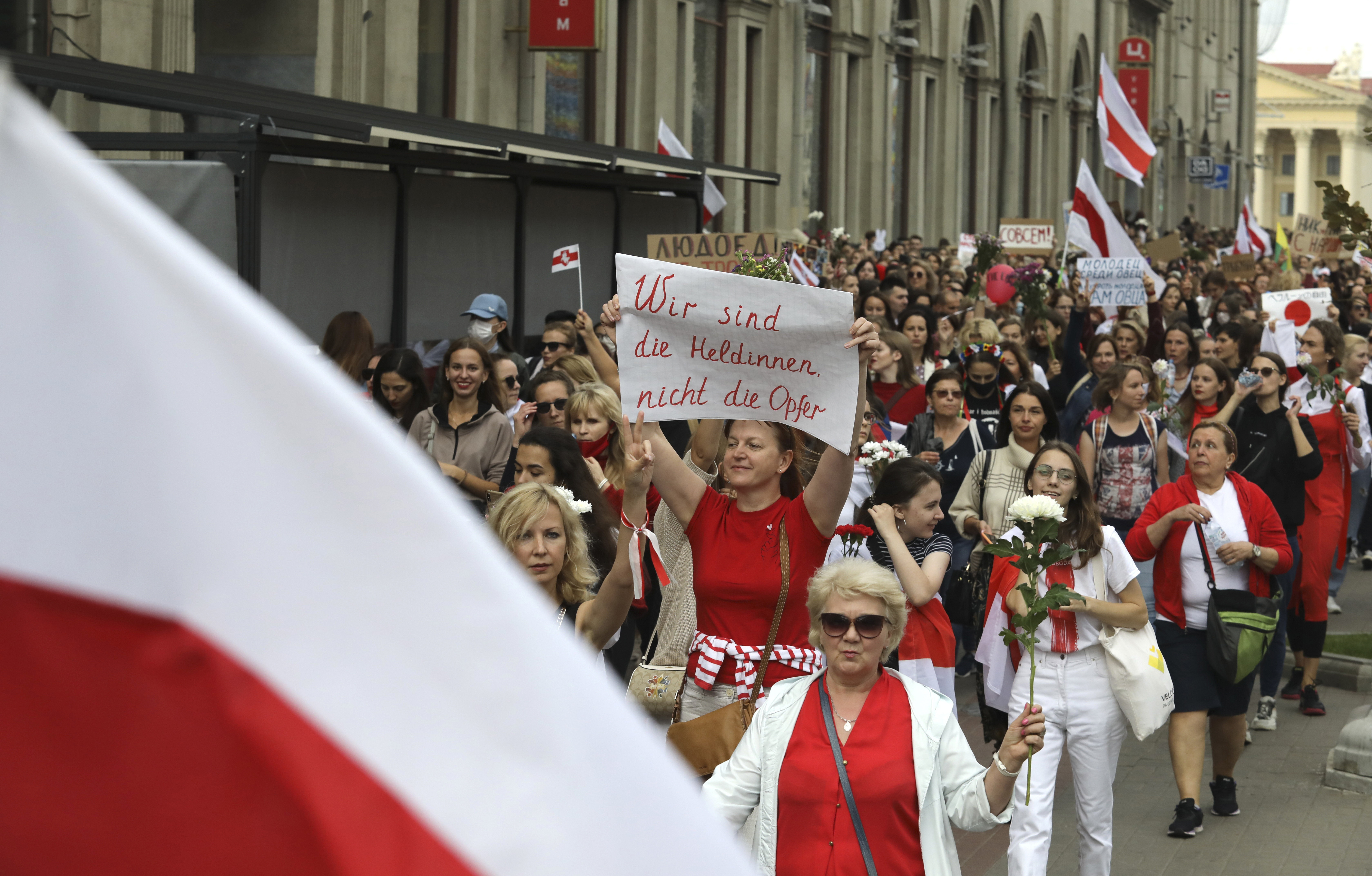 Marches and demonstrations by women have become a frequent feature of the protests, which broke out Aug. 9 after the election in which Lukashenko, who has been in power since 1994, was officially tallied with an 80 per cent landslide victory.