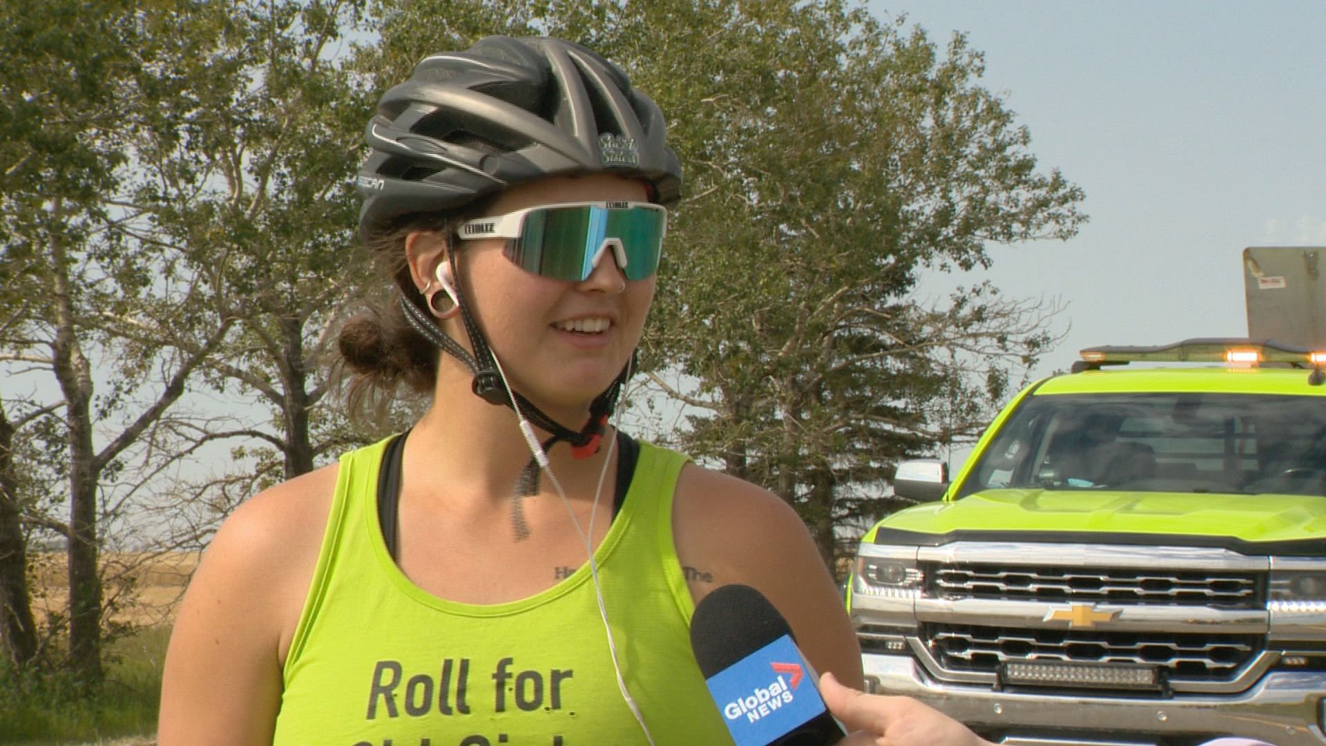 “We’re trying to empower them through community and sport,” said Waldo, who stopped on the side of the road 46 kilometres into the inline skating adventure to speak with Global News.
