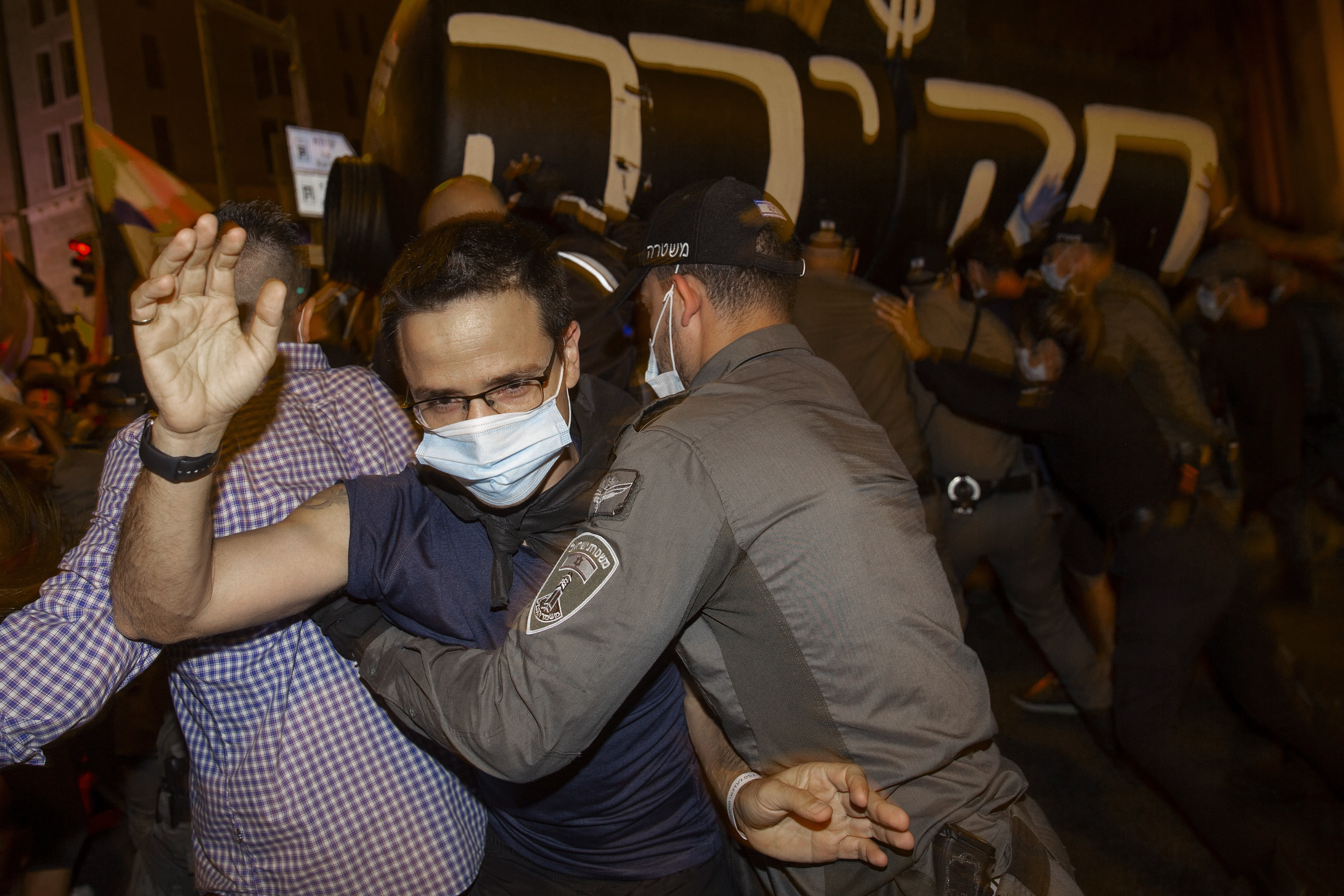 The protesters held banners reading “Revolution” and “Citizens Write the Constitution” as they marched toward Netanyahu’s residence. A sign aimed at the prime minister was projected on a building reading in Hebrew: “Enough with you.”