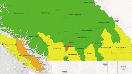 The ministry said regions of concern included the Nicola in the Southern Interior and east Vancouver Island.