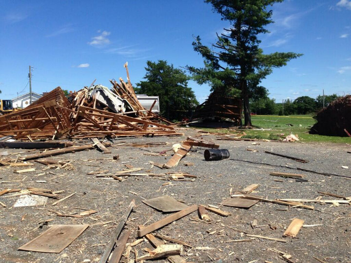 Raw video: Aftermath of barn destruction reportedly by a tornado