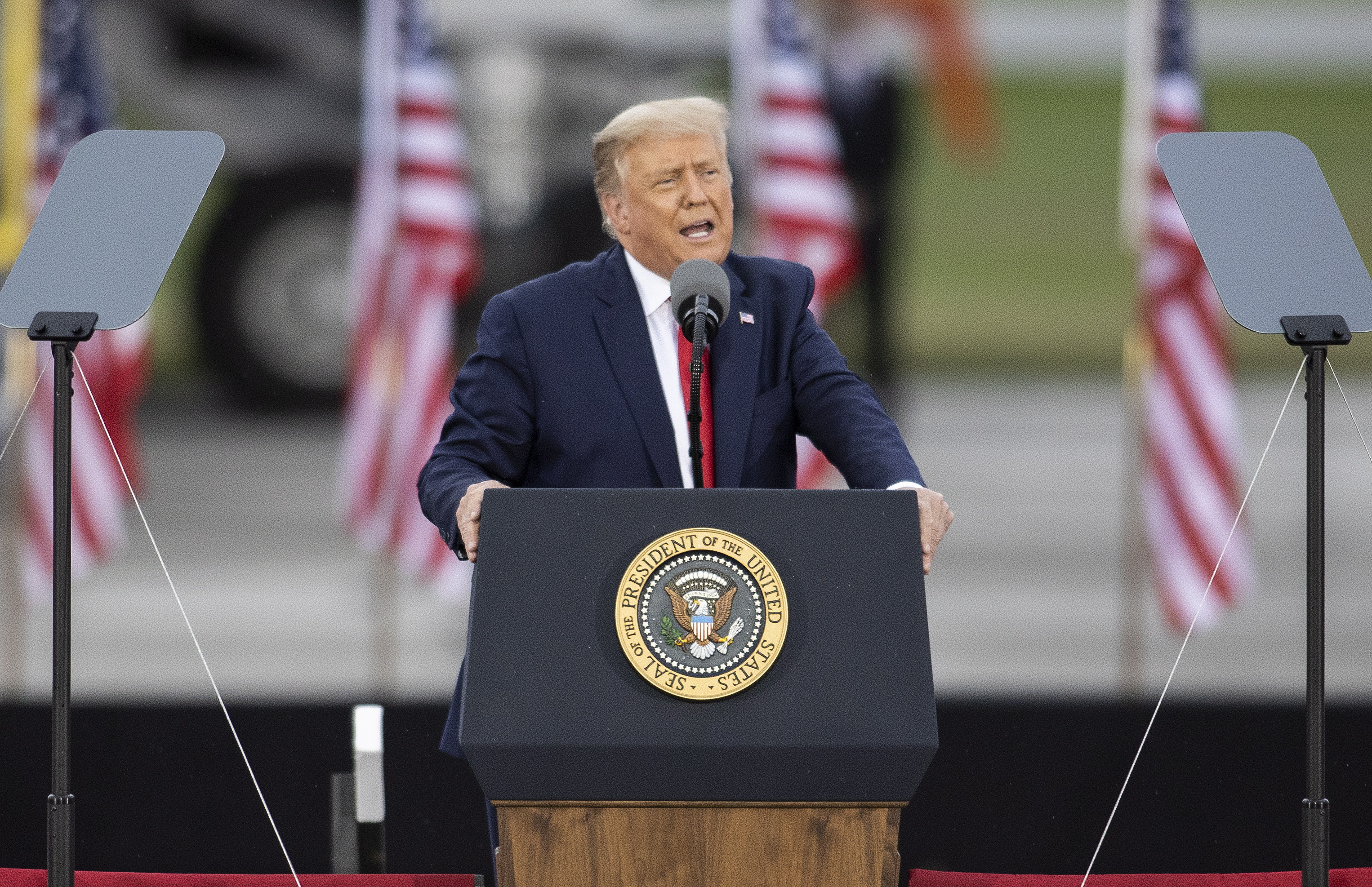 While the rallies so far have been held in open-air airport hangars, they have been drawing thousands of supporters despite local restrictions. And the majority of attendees, including in Michigan, have refused to wear masks, even when mandates are in place. Trump has characterized the rallies as “peaceful protests.”