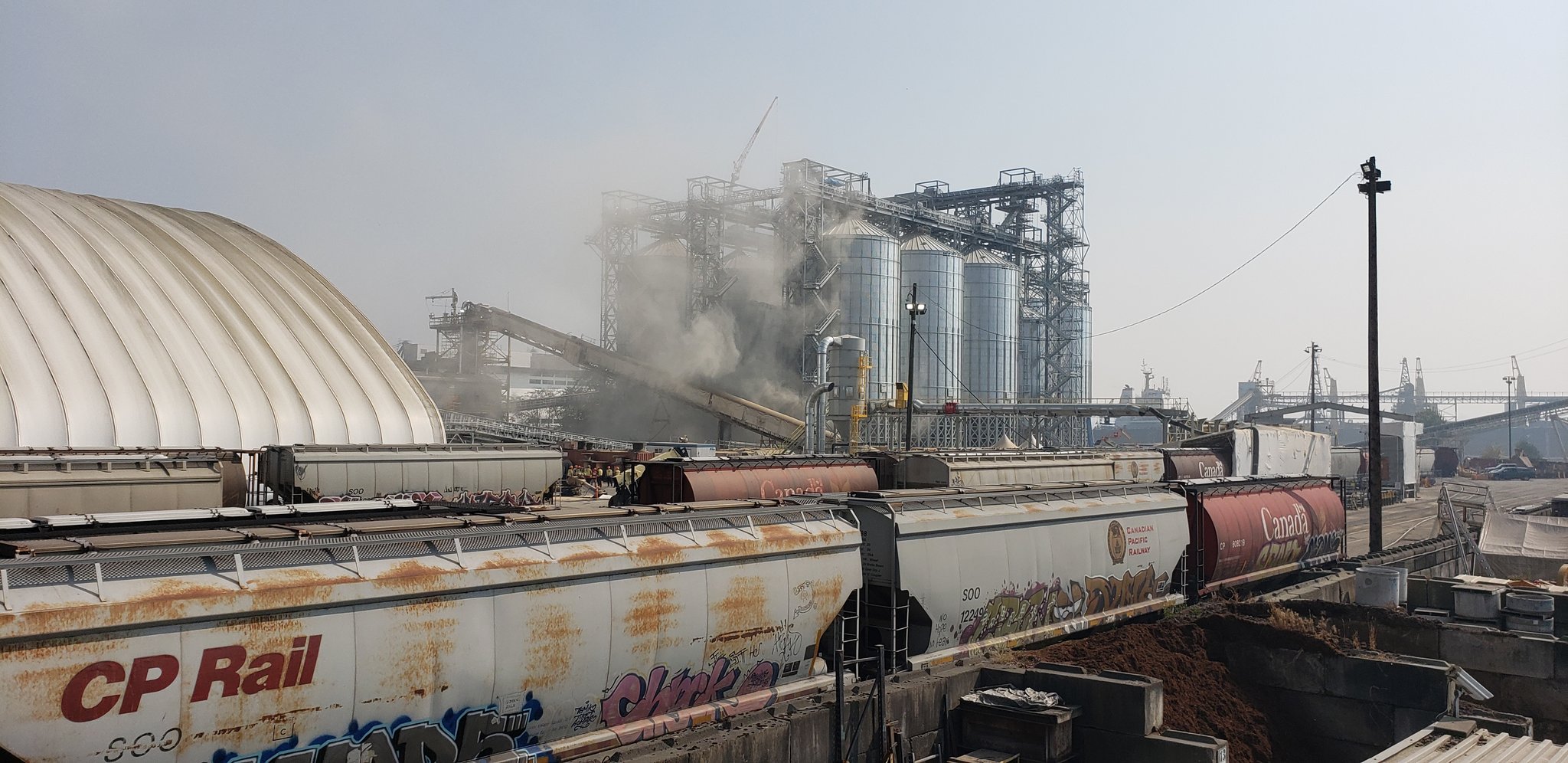 Assistant Chief Jeremy Duncan said firefighters were called to the Fibreco Exports facility near McKeen and Pemberton avenues just after 2:30 p.m., where a silo containing lentils had collapsed.