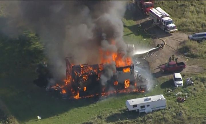 Video captured by the Global One News helicopter showed the home’s roof and the entire structure itself collapsing. Soon after, the home already appeared to be gutted by the flames aside from some wood beams.