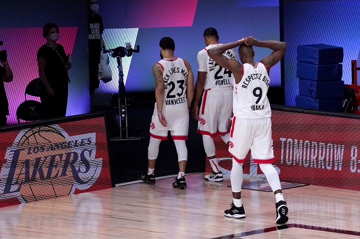 Friday’s national anthem was a nostalgic contrast to the fanless arena at Walt Disney World, a reminder of last season’s Canada-wide celebration during Toronto’s historic Larry O’Brien Trophy run. “O’ Canada” was actually footage from Game 5 of last year’s NBA Finals, when Toronto opera singer Doug Tranquada led a noisy Scotiabank Arena crowd in a stirring performance.