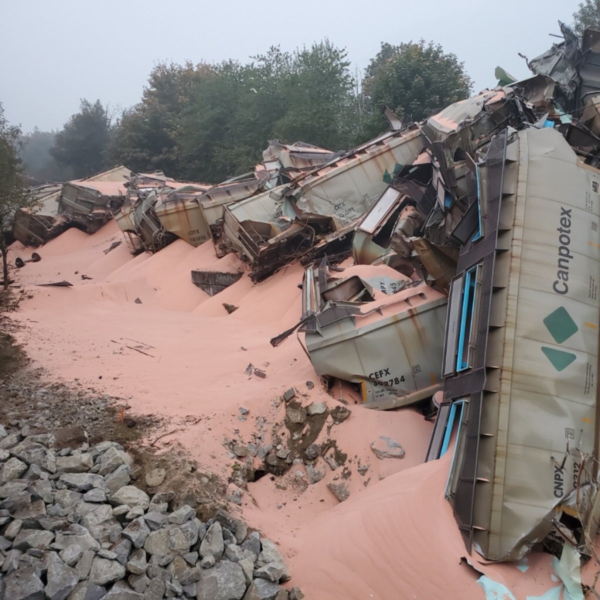 The cars were carrying potash, CN confirmed, which is primarily used as a fertilizer.