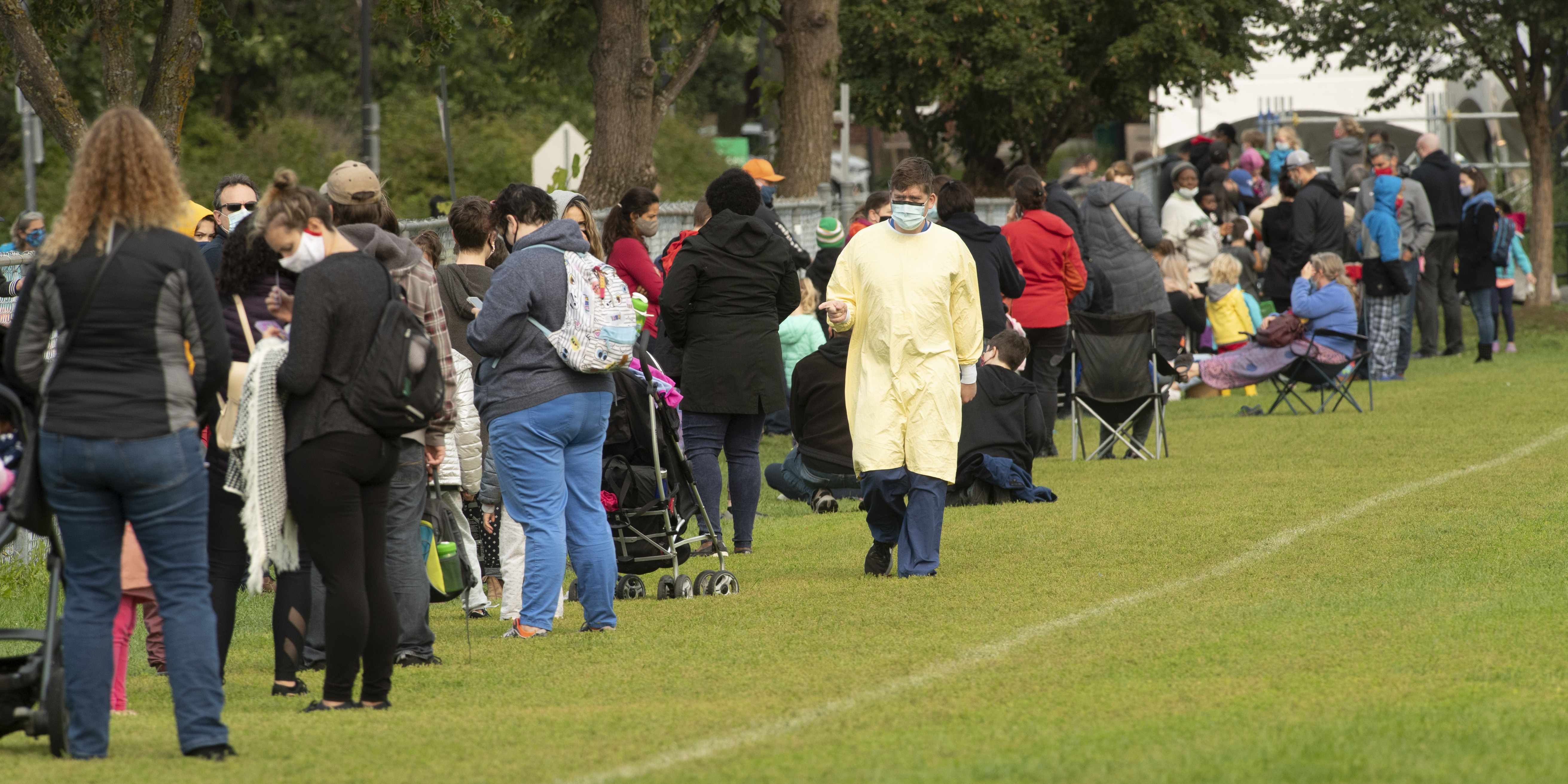 Dr. Alan Forster, head of testing strategy at the Ottawa Hospital, said in a media availability Tuesday that families with children heading back to school are driving the new demand. Before now, most of the people presenting for testing were adults, but the demographics in the queue at Brewer Arena have shifted.