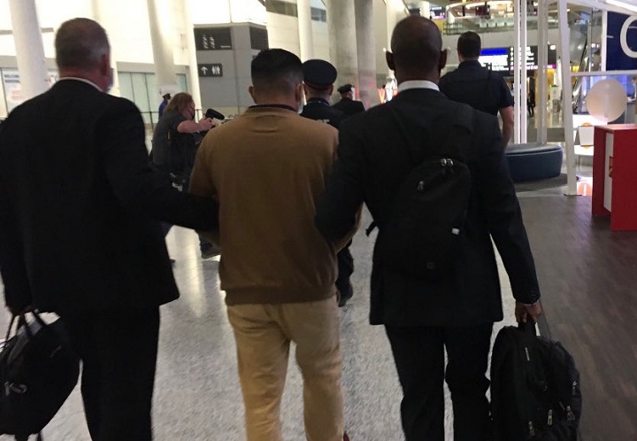 Police made the announcement in a statement Tuesday evening, sharing a photo of the suspect on Twitter being walked through Toronto Pearson International Airport by investigators.