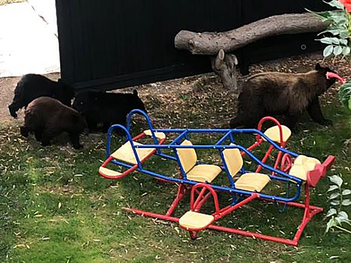 Keri Burgart of Summerland, B.C., says she came home during the lunch hour on Tuesday and was surprised to see the quartet of bruins.