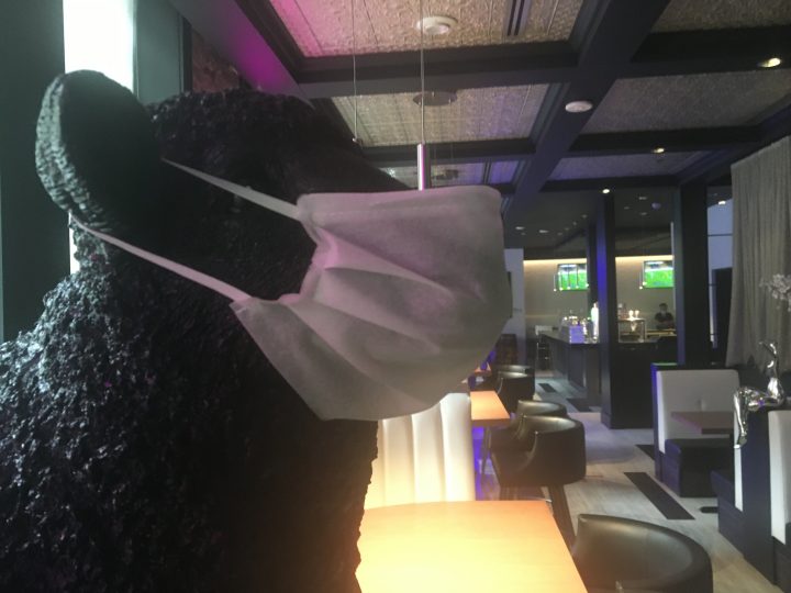 The sheep statues at Modern Steak are adorned with cloth masks — but some guests aren’t amused by the masked mutton.
