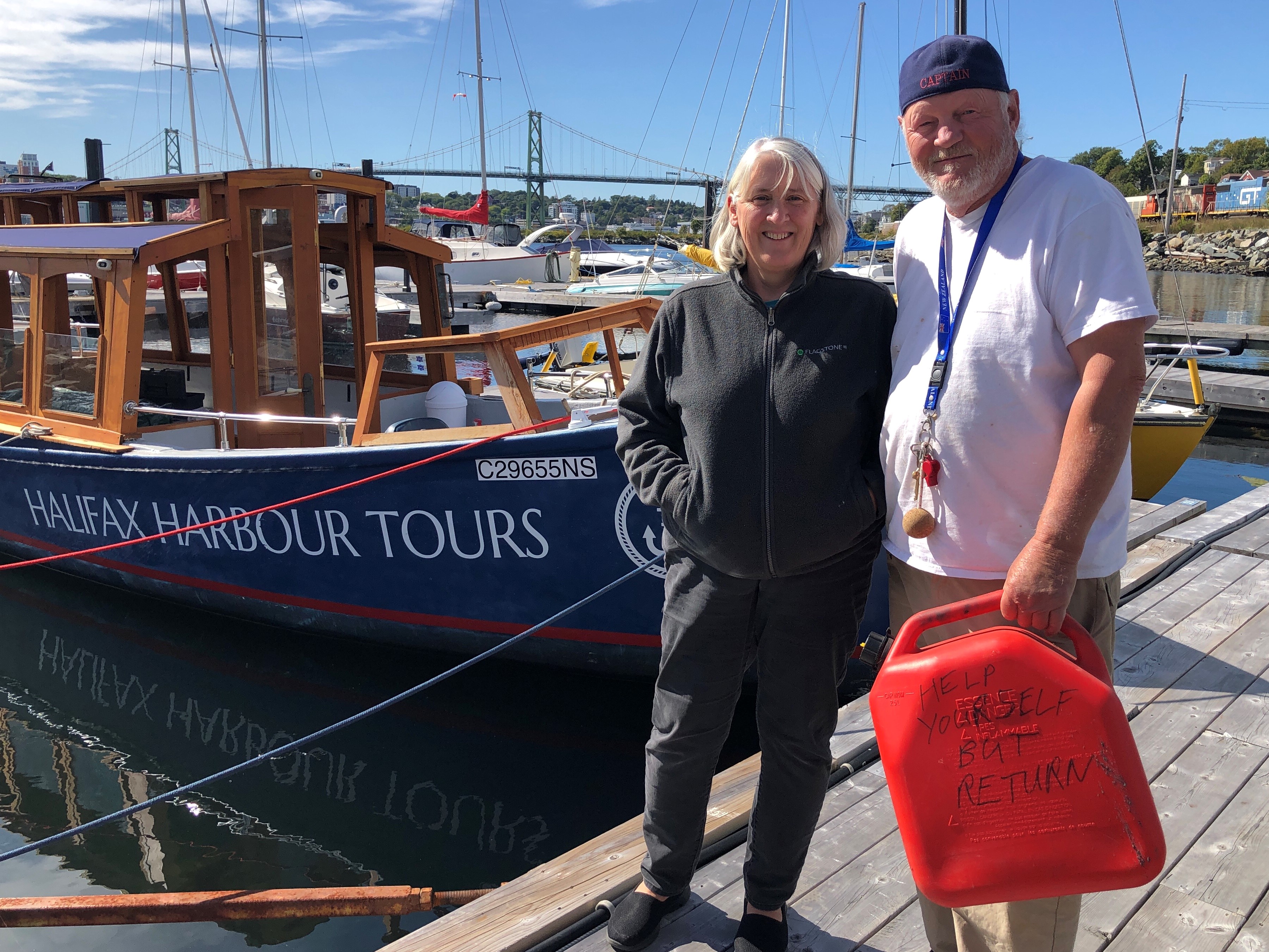 At the Alderney Landing marina, Glenna Thornhill and Colin Smith have parked their boat in the corner. They’re both busy running rope and hanging extra boat bumpers.