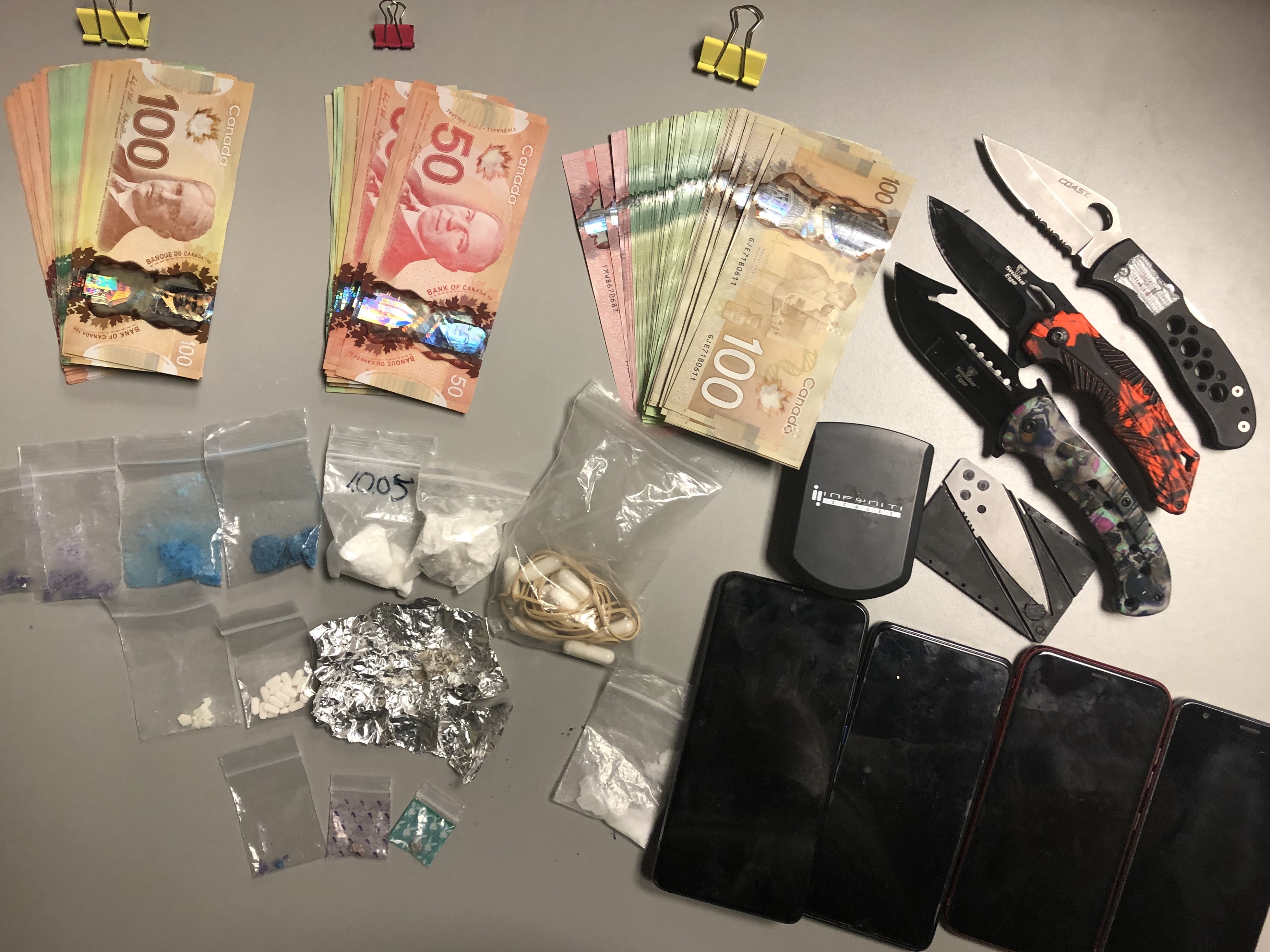 Shauna Marie Wilson, 32, and Darryl Edward Thorne, 42, both of Port Hope, were arrested and charged with six counts of possession of a Schedule 1 substance for the purpose of trafficking (fentanyl, cocaine, methamphetamine) and three counts of possession of a prohibited weapon.