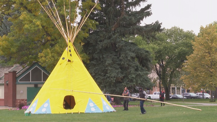 A giant teepee has been erected in Lethbridge’s Galt Gardens by the Sage Clan for Reconciliation Week in Lethbridge.
