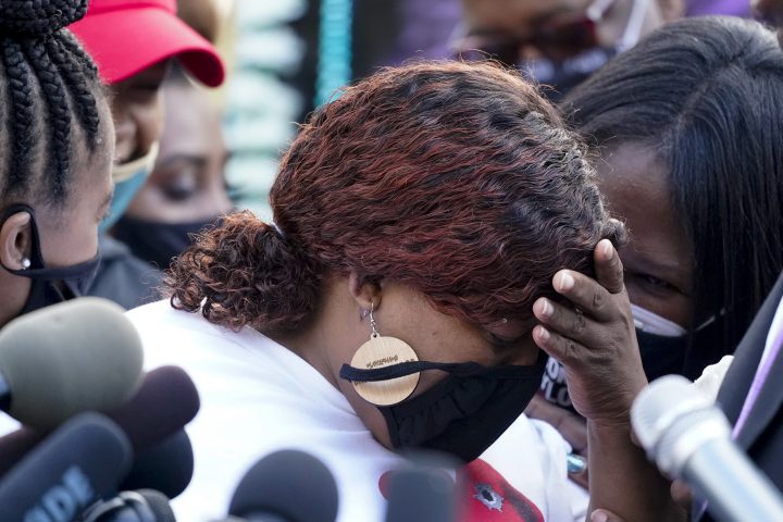 “I am an angry Black woman. I am not angry for the reasons that you would like me to be. But angry because our Black women keep dying at the hands of police officers — and Black men,” Taylor’s mother, Tamika Palmer, wrote in a statement read by a relative. She stood close by wearing a shirt that said, “I (heart) Louisville Police” with bullet holes in the heart emoji.