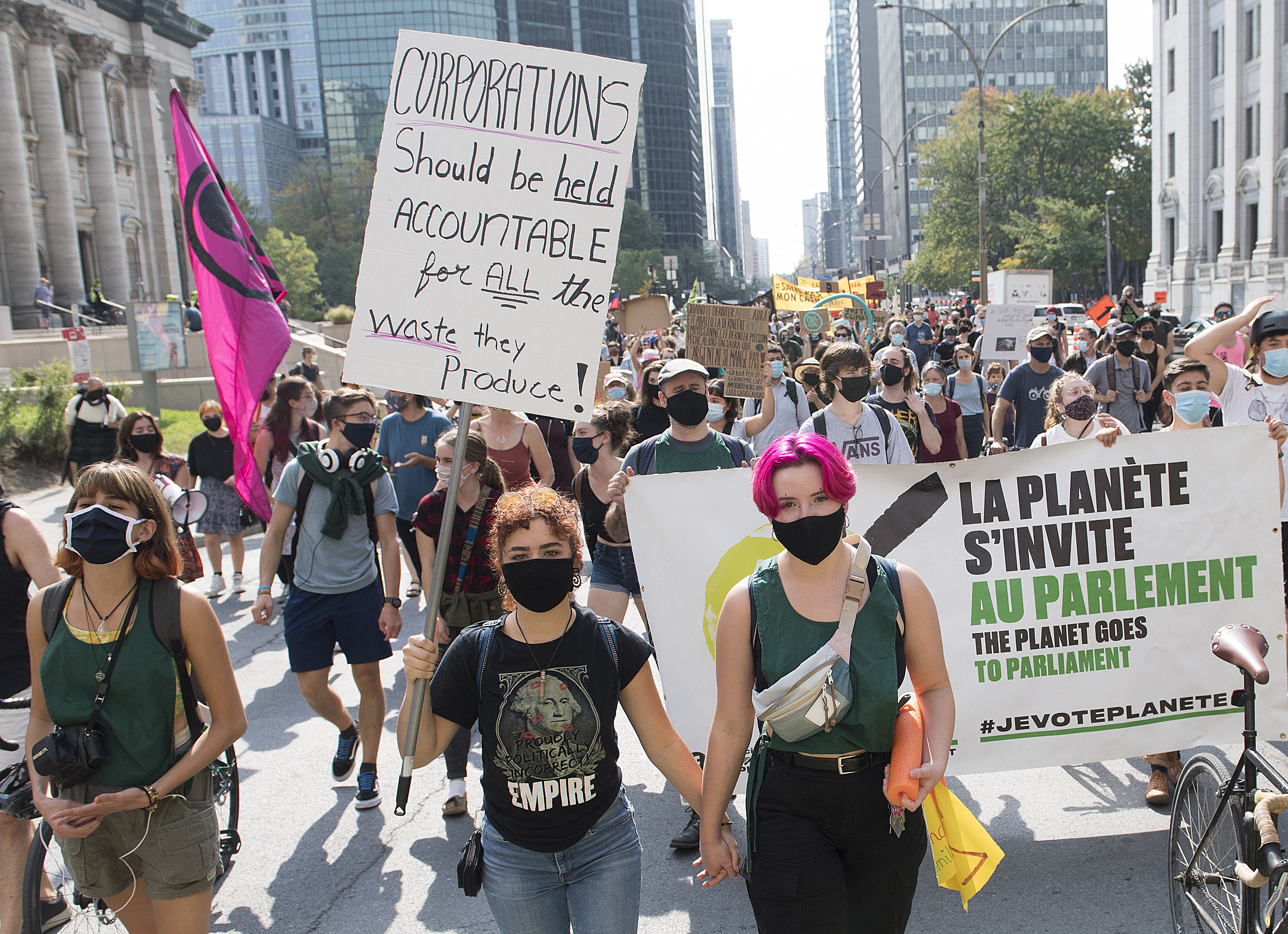 Demonstrators gathered in downtown Montreal on Saturday to protest planetary warming on the Global Day of Action for Climate Justice.