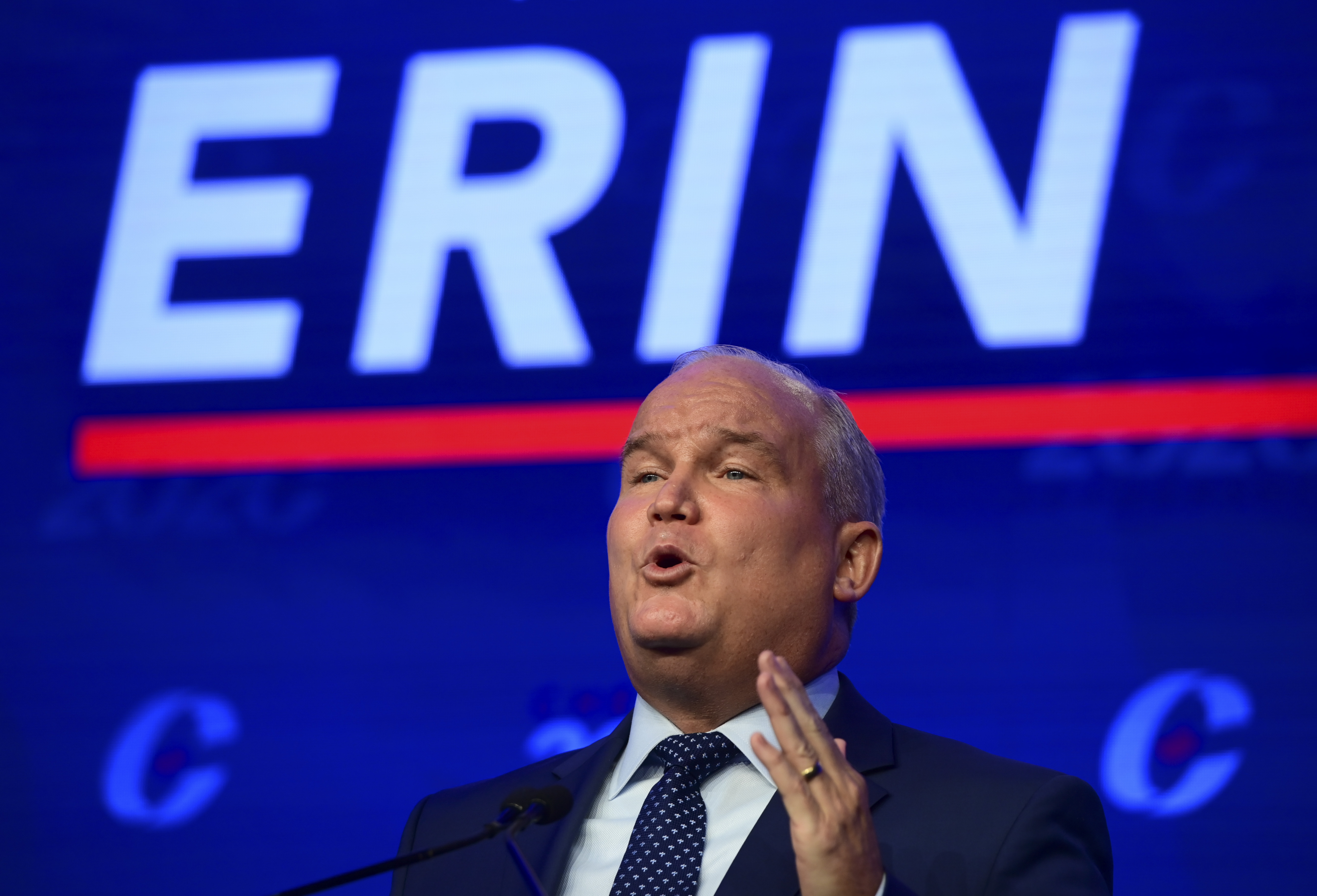 He pledged tough foreign policy that would hold China more accountable for its aggressive actions on trade, increased health funding to the provinces, and fiscal policies that take the needs of small businesses to heart.