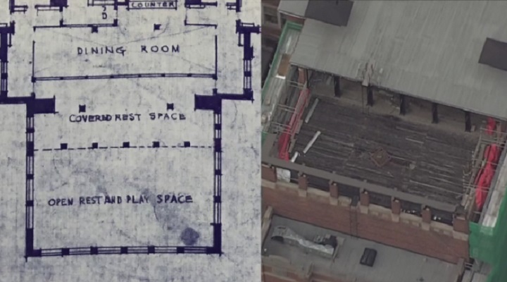 Orde Street Public School, in the heart of downtown Toronto, was built as an open-air school for the treatment and prevention of tuberculosis in children — the first of its kind. The third-floor blueprints show several open-air classrooms and an accessible rooftop classroom which remains open to the elements to this day.