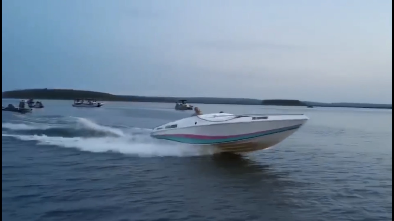 A group of people fishing on boats in McGregor Bay on Rice Lake had a dangerous encounter with a powerboat on Saturday evening.