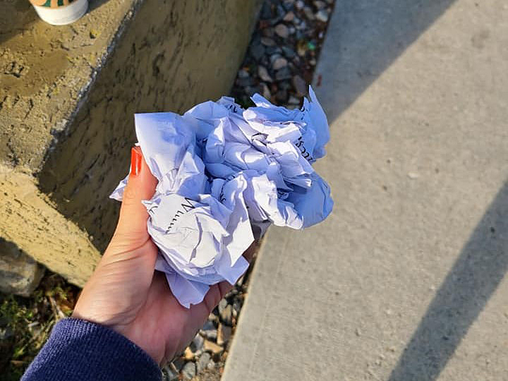 The small clippings on white paper, which were hand-cut and just a few inches long, were scattered sometime early Wednesday, during Orange Shirt Day, and were immediately denounced by local officials.