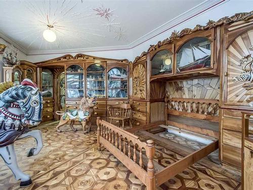 The solarium is filled with cacti that Titterington cared for in the last few decades of his life, as well as hand-made wooden horses hanging from a carousel-style ceiling.