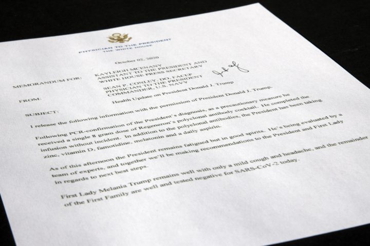 Trump’s physician, Dr. Sean Conley, said Trump also was taking zinc, vitamin D, an antacid called famotidine, melatonin and aspirin. None of those have been proven to be effective against COVID-19.