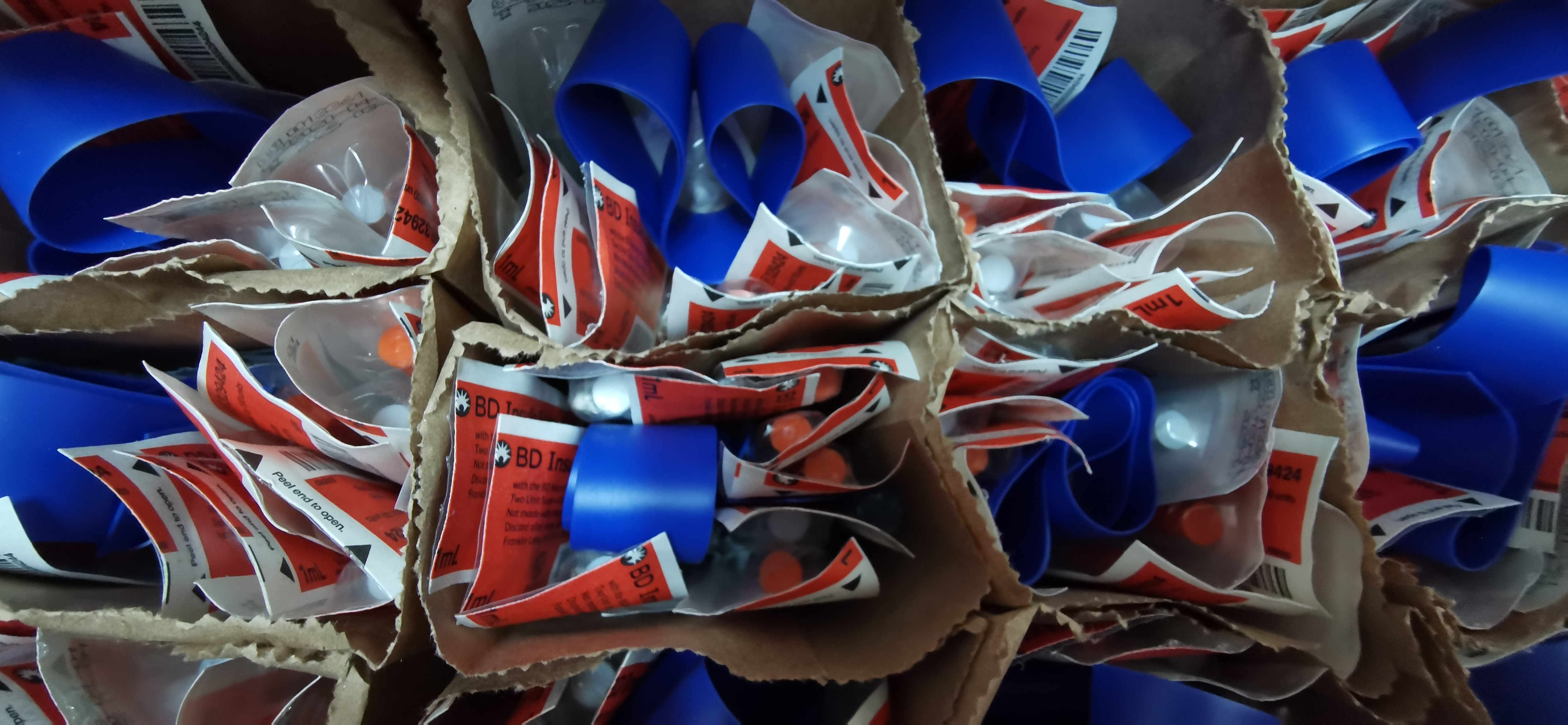 In 2017, the provincial government invested in the distribution of free naloxone kits to pharmacies across Nova Scotia. While naloxone is a critical tool in reducing opioid overdose deaths, the brown bags are also an important step in reducing the overall harm that can come with sharing used supplies.