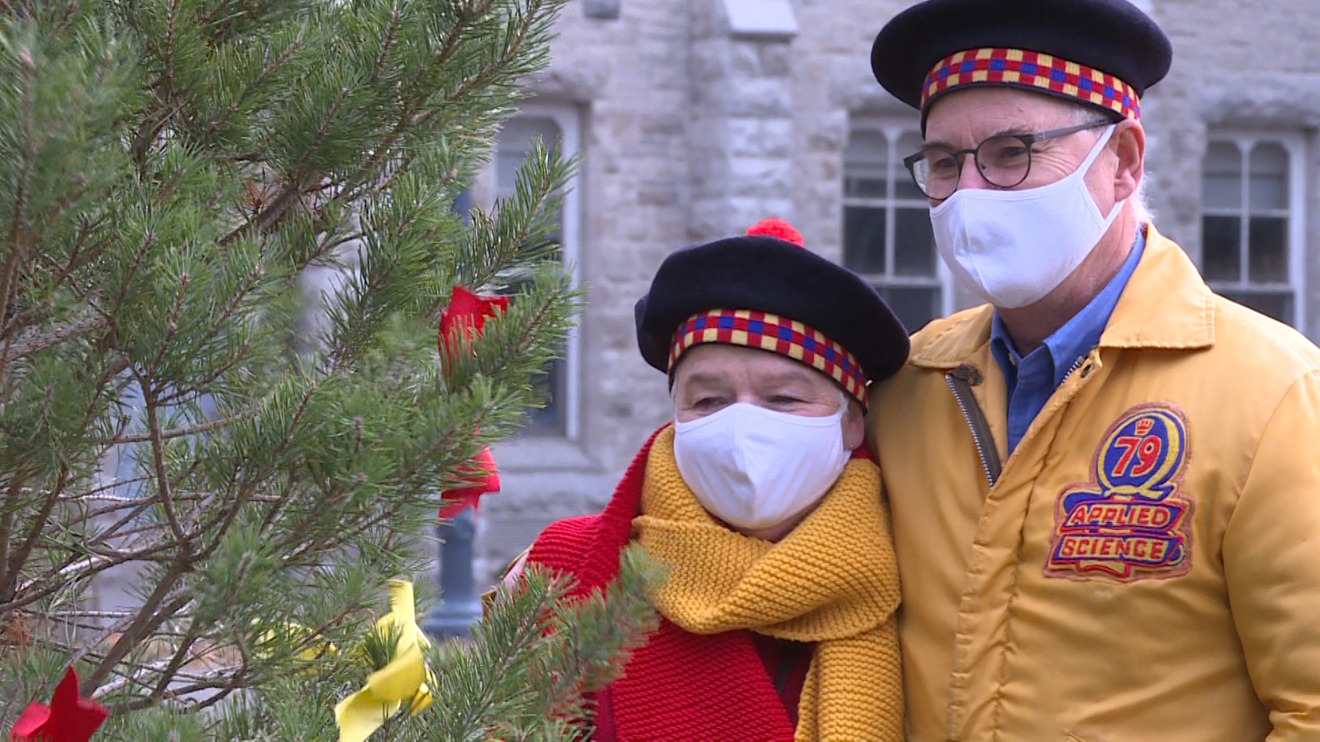 The group says they plan on coming back to Ros’s tree to decorate it for Christmas, but in the meantime, they hope the tri-colours blowing in the wind will be a reminder for all students who walk by that the bonds made at Queen’s last a life time.