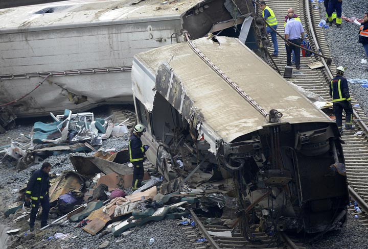MADRID, Spain – A security camera has captured the moment when a Spanish train veers off the track and crashes into a wall at high speed.