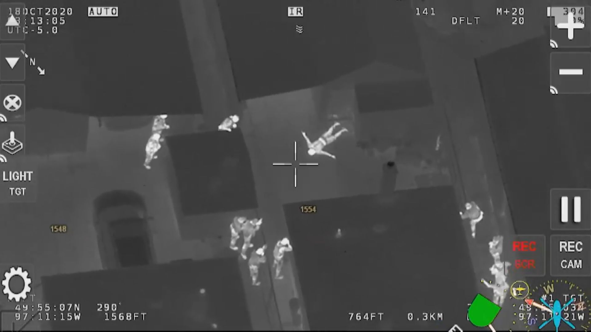 “Some suspicious activity here,” a voice on the AIR1 video released by police says.
