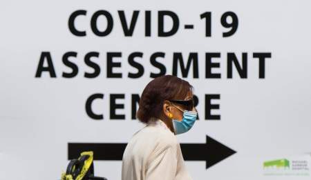 FILE - A woman wearing a face mask arrives at the COVID-19 assessment center of a hospital in Toronto, Canada, July 20, 2020. Getty Images file