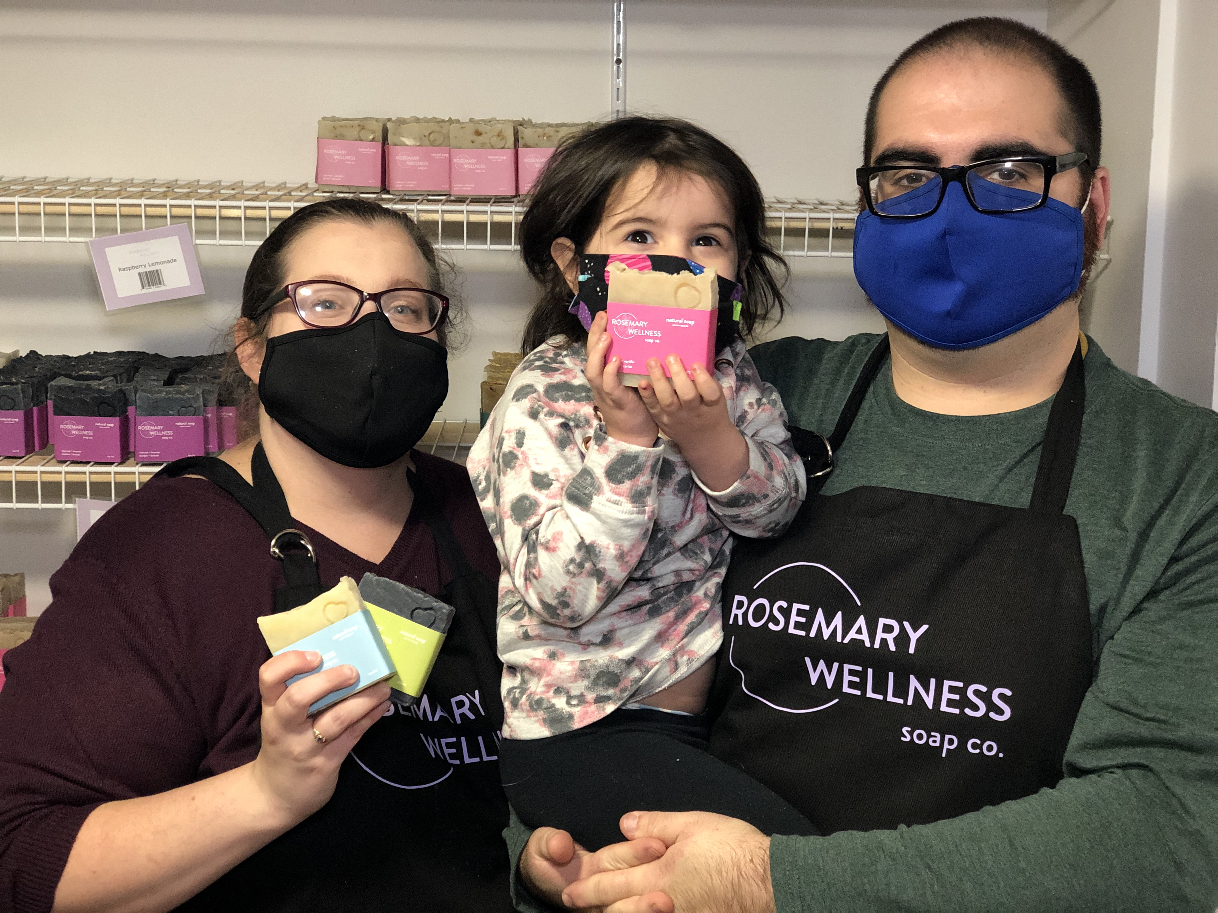 The couple owns Rosemary Wellness and manufactures homemade all-natural vegan soaps in the basement of their home.