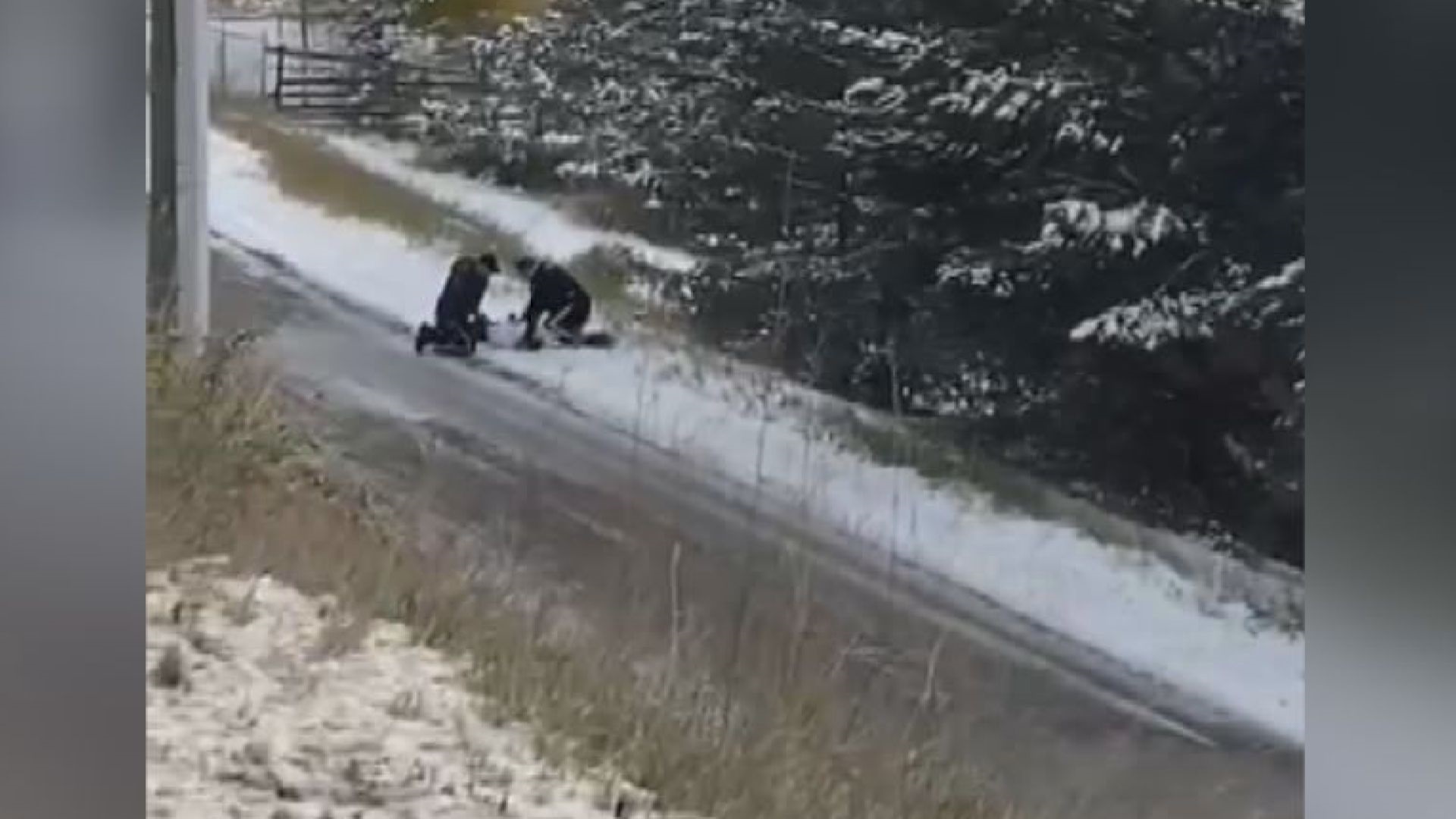 The video, which was shot Sunday morning by a civilian witness, was posted to Facebook.