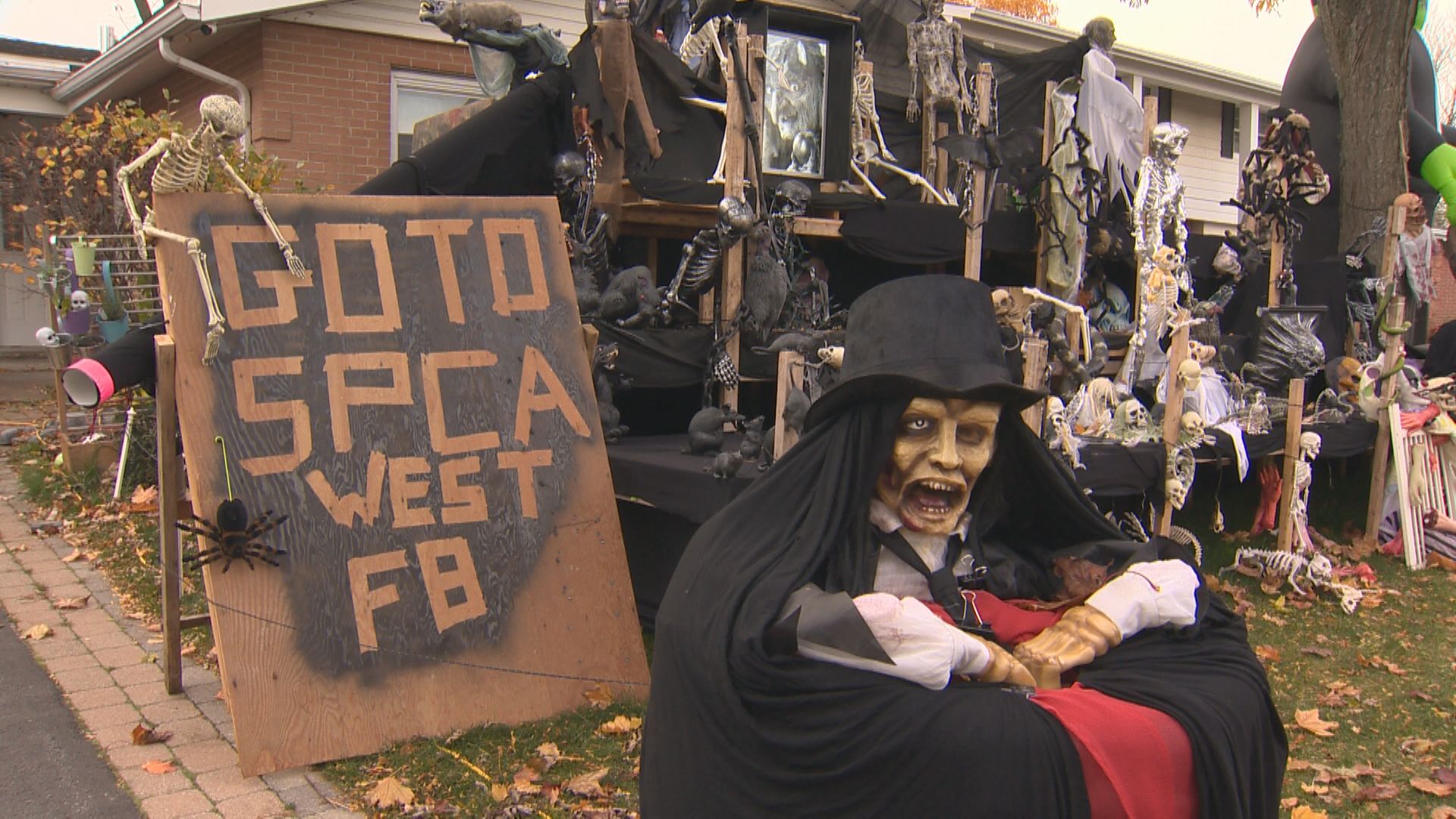 A West Island home is raising money for a good cause this Halloween with a spooky front lawn display.