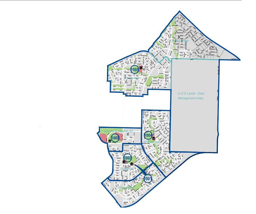 The ward boundaries have changed due to the review of all city wards by the Municipal Wards Commission with Silverspring, the University Heights development area and the University of Saskatchewan lands — north development area all moving from Ward 10 to Ward 5.