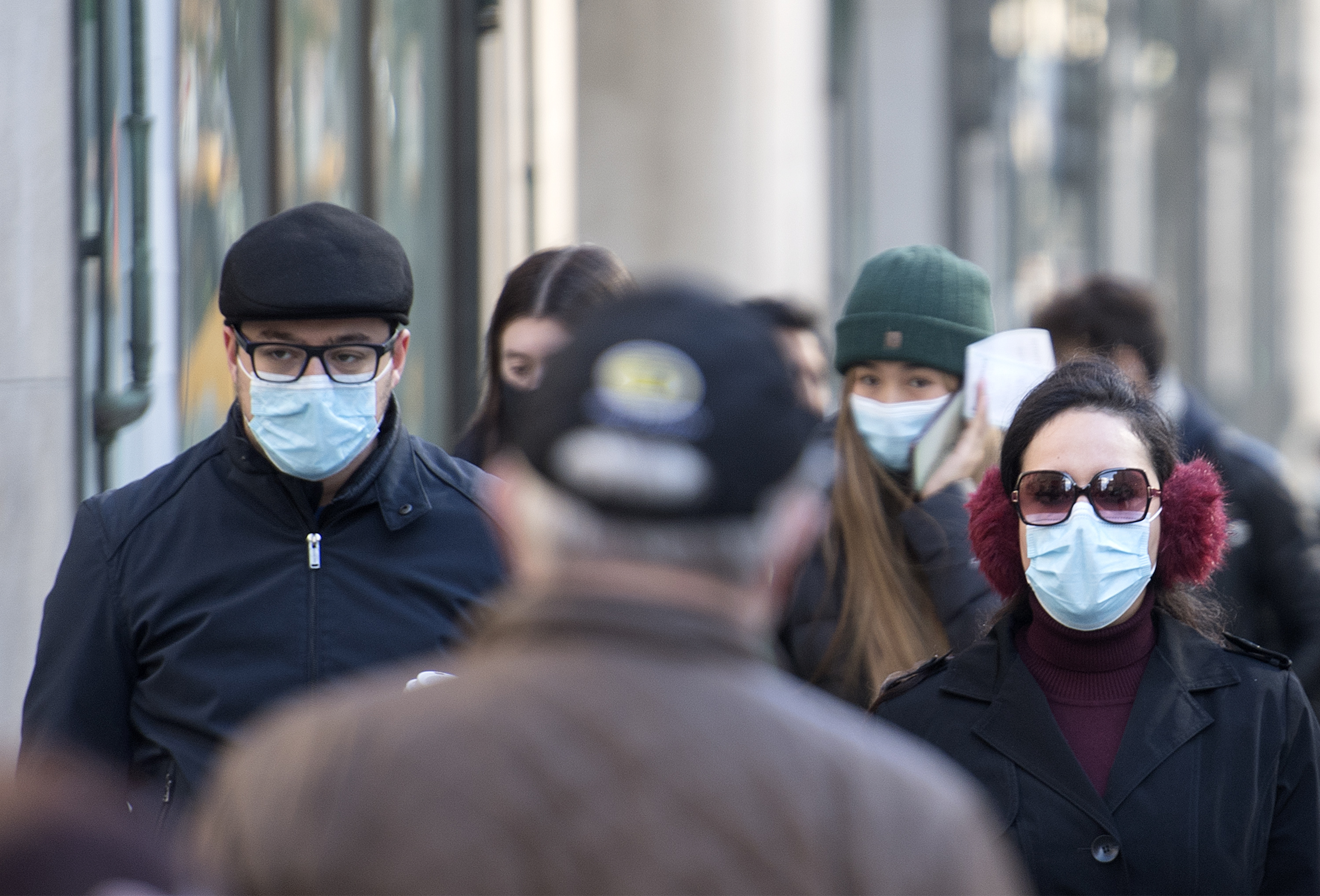 People wear face masks as they cross a street in Montreal, Saturday, October 31, 2020, as the COVID-19 pandemic continues in Canada and around the world. THE CANADIAN PRESS/Graham Hughes