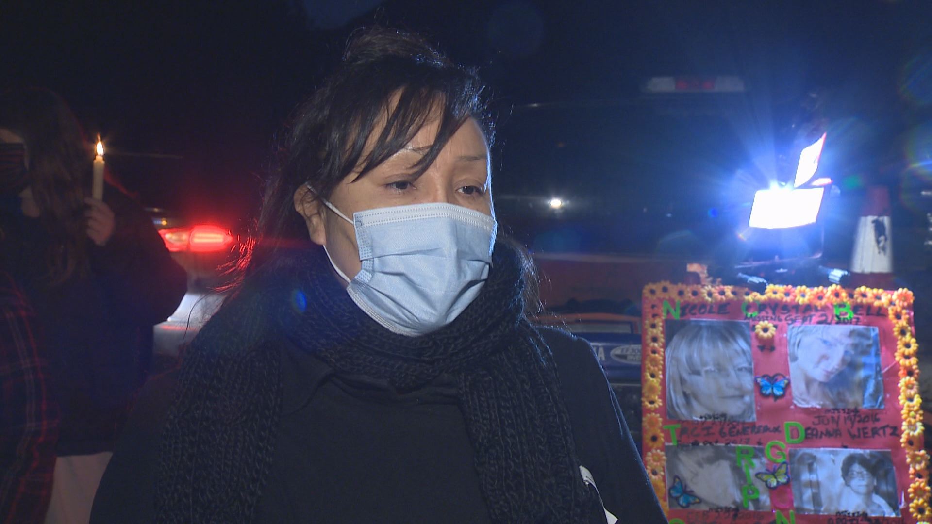 Relatives of missing women were among dozens of people who attended a rally Sunday evening at a Salmon River Road property near Salmon Arm, B.C., where the remains of a missing teen were found in 2017.