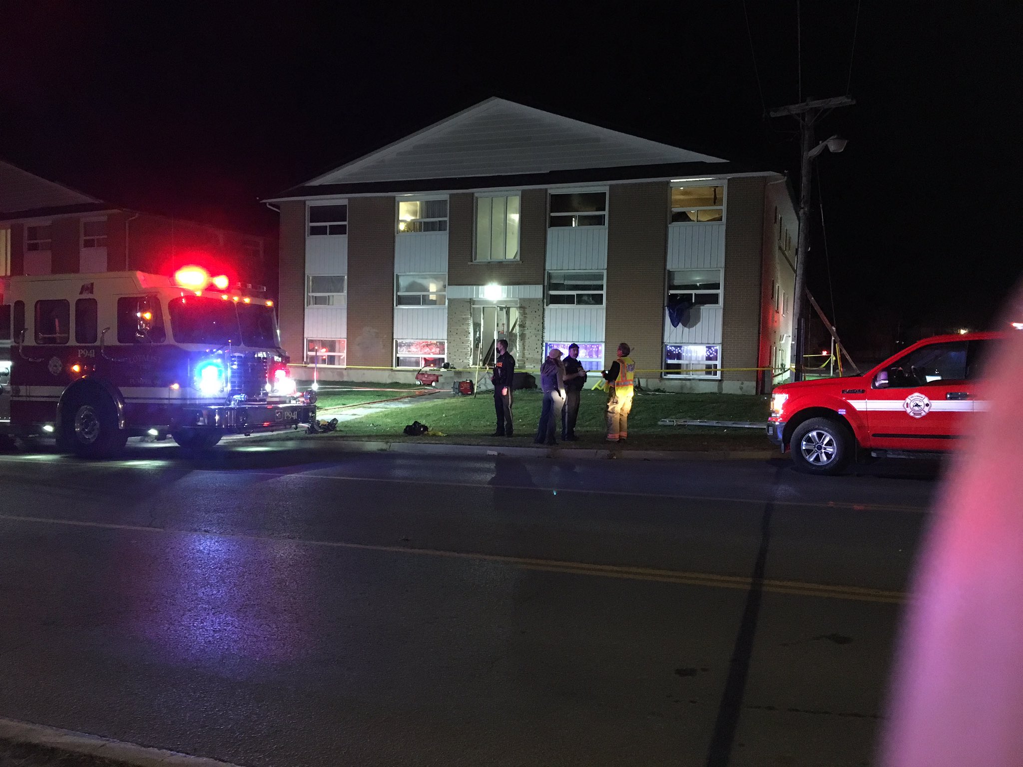 Several emergency crews rushed to Manitou Crescent Wednesday evening to respond to the blaze. The road was closed in both directions, and police tape surrounded the building.