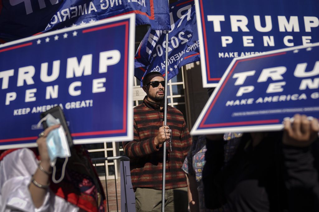 The messages directed Trump fans to converge at a downtown intersection where hundreds of protesters from the opposing candidates’ camps faced off Thursday afternoon. Pennsylvania is a crucial battleground state where former Vice-President Joe Biden’s jumped ahead Friday and in a televised address later predicted a victory that would give him the presidency.