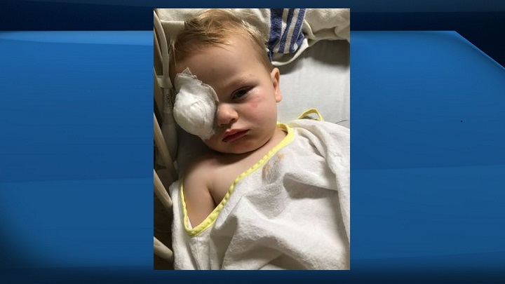 An 18-month-old boy from Hinton, Alta., had emergency surgery at the SickKids Hospital in Toronto on Friday to remove his right eye after his mom suspected he had eye cancer.