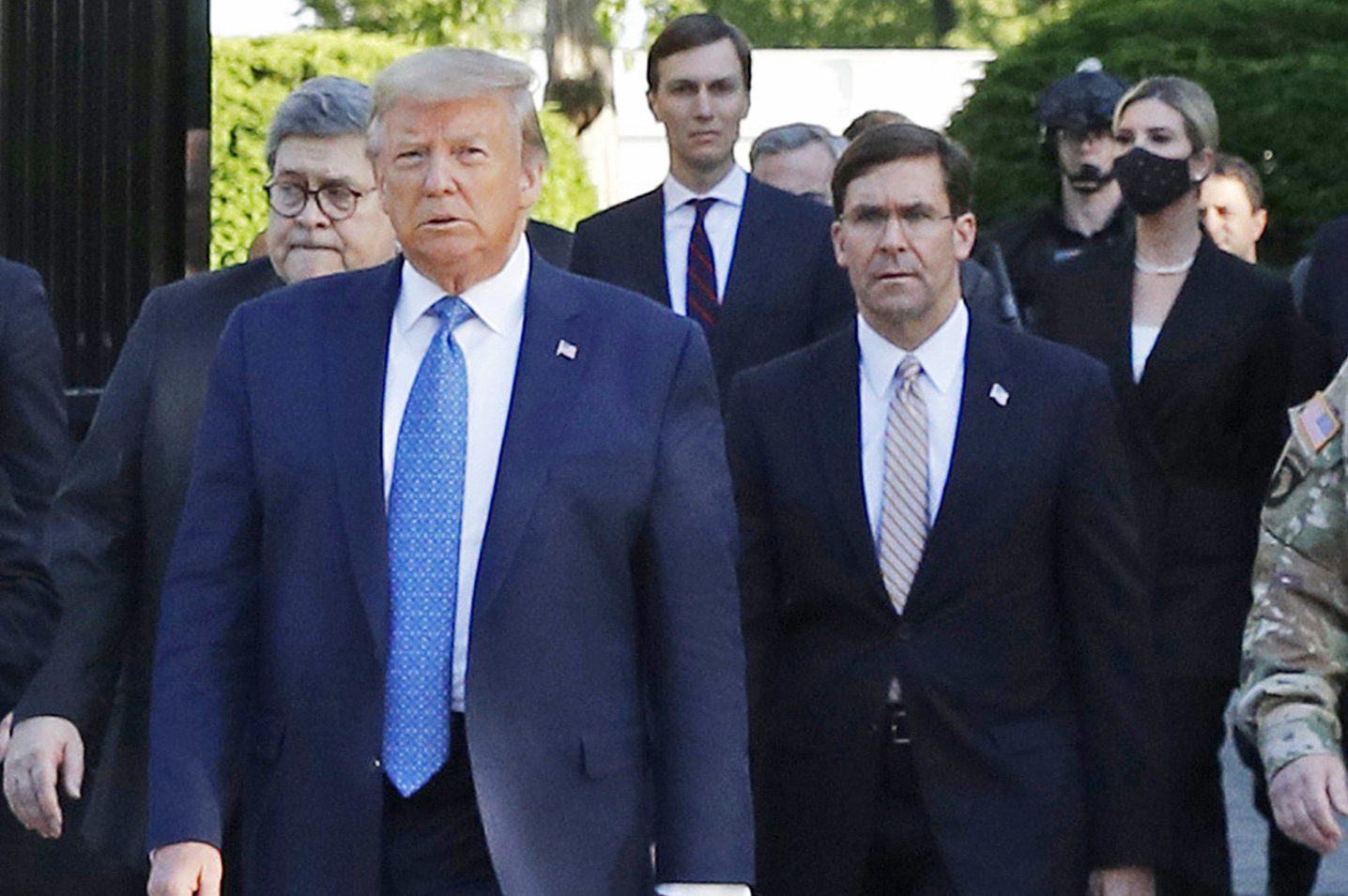 Esper said he didn’t know he was heading into a photo op, but thought he was going to view damage at the church and see National Guard troops in the area. He was accompanied by Gen. Mark Milley, chairman of the Joint Chiefs of Staff, who later expressed public regret at having been present in uniform.