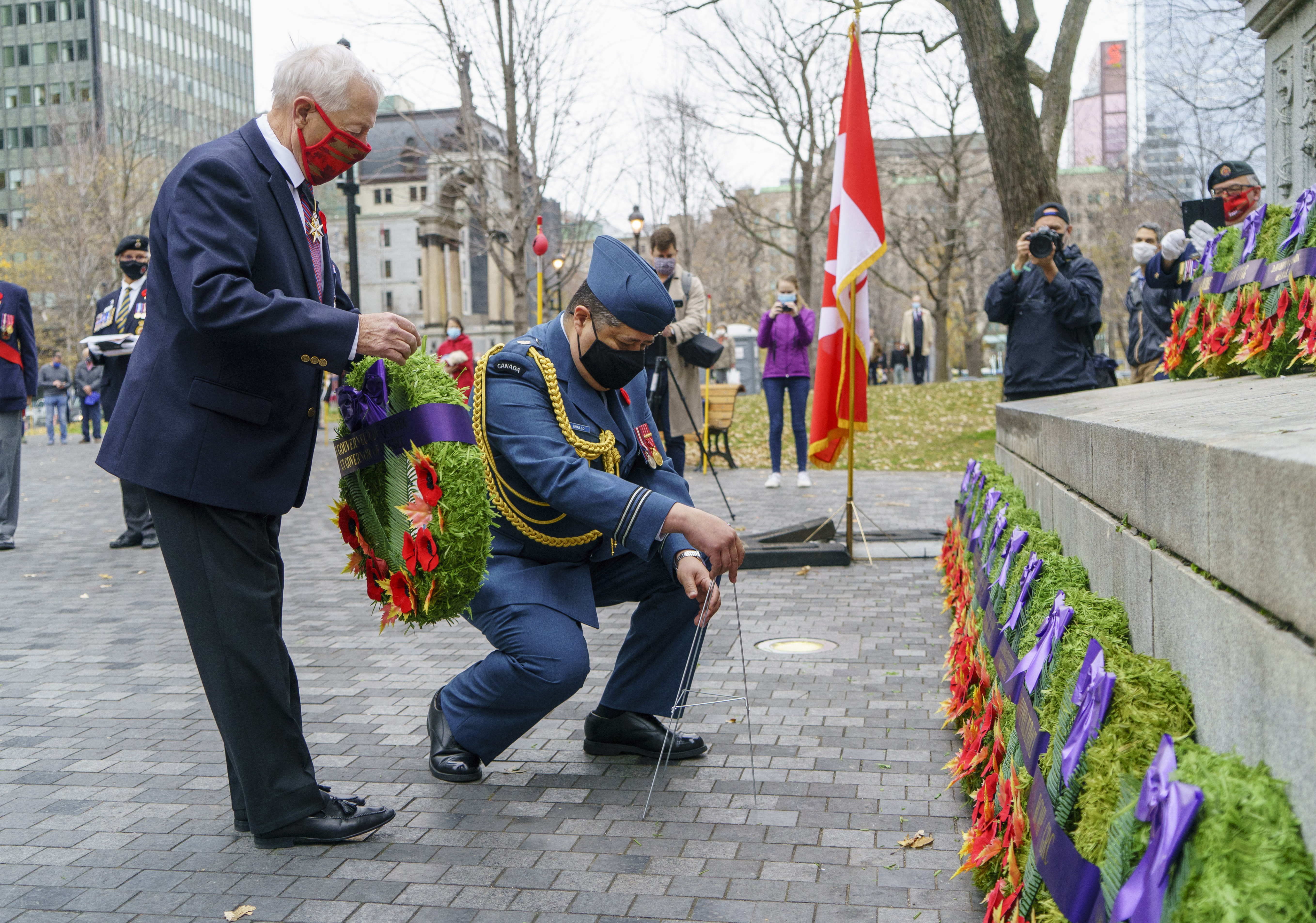 In Montreal, there was a small ceremony downtown to mark the occasion. A small gathering of people were present to honour veterans and those who died, and the Last Post was played before wreaths were laid at the cenotaph.