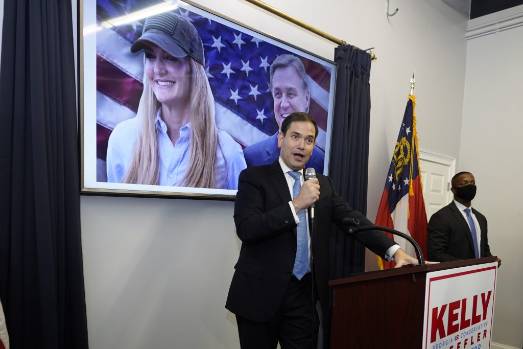 Hours earlier, Republican Sen. Kelly Loeffler stepped to a microphone in suburban Atlanta and addressed hundreds of eager supporters packed into the Cobb County GOP headquarters. The freshman senator and her Florida colleague, Sen. Marco Rubio, stirred the crowd with their insistence that the change offered by Ossoff and his fellow Democratic Senate hopeful Raphael Warnock means “radical elements” would control Washington.