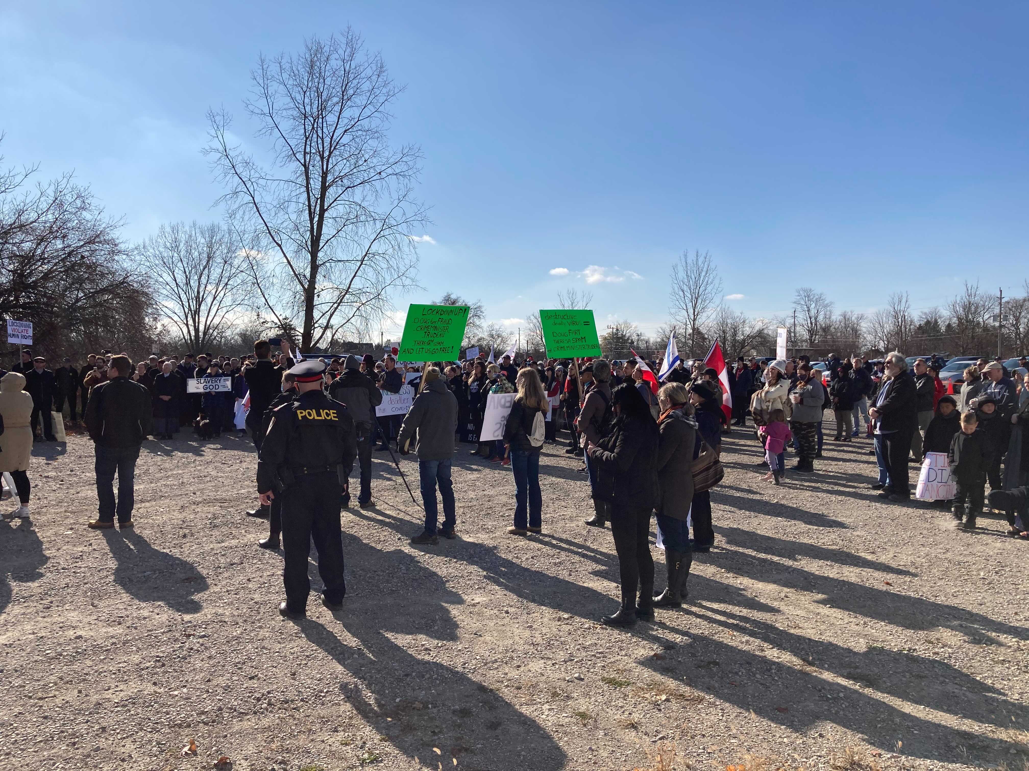 About 200 people attended a “freedom march” in St. Thomas, Ont., on Saturday hosted by a controversial pastor and supported by The Line Canada, a group that does weekly anti-lockdown protests across the country.